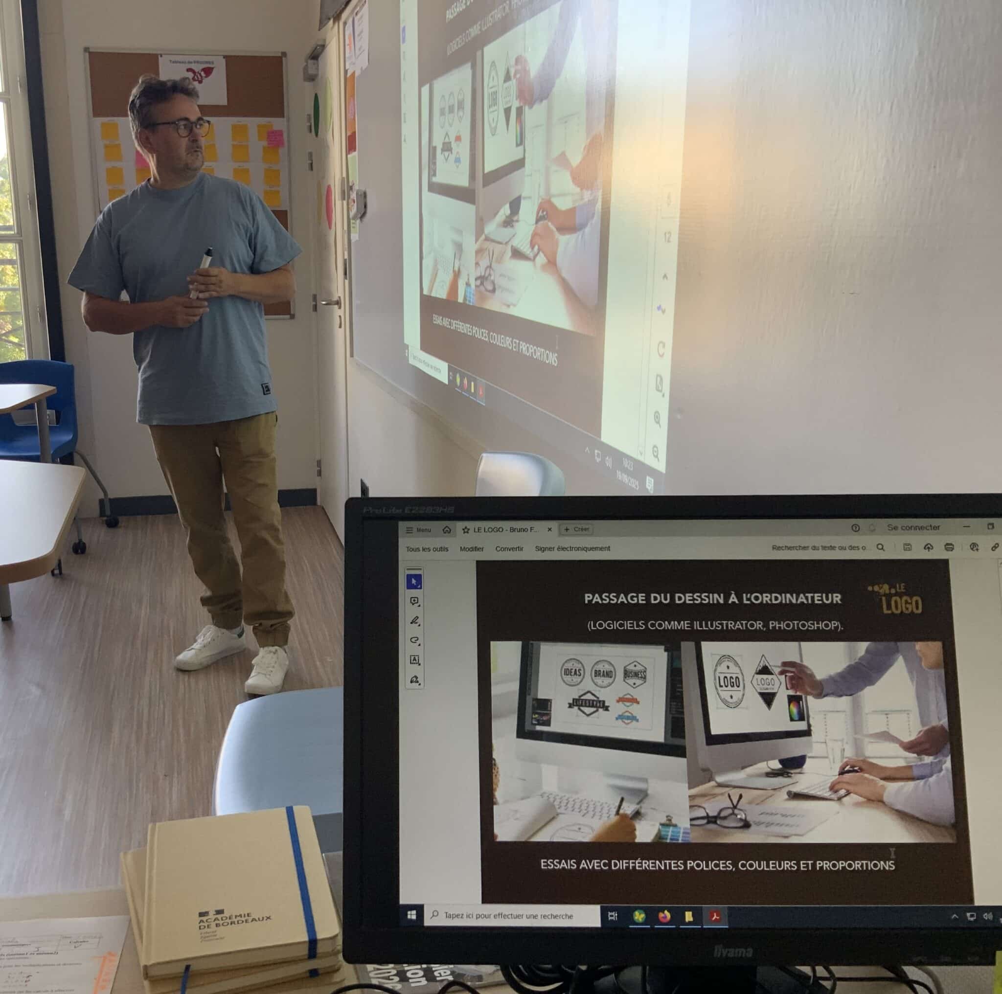 - Septembre 2025 : Le parrain de la promotion accompagne nos élèves de 3PM dans la réalisation du logo de la cafet'