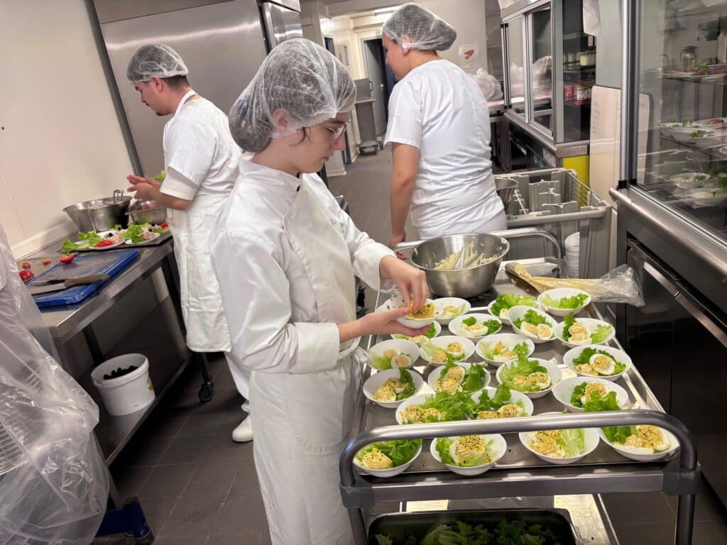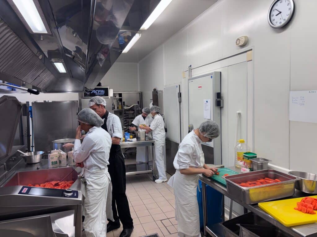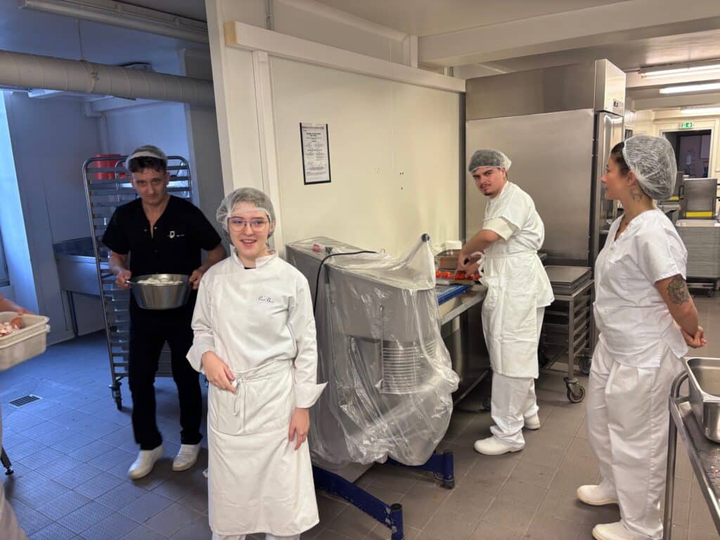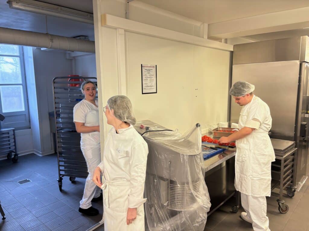 Les élèves de CAP Production Service en Restauration ont réalisé un TP avec l’équipe de cuisine du lycée. Accompagnés par M.Samson notre chef cuisinier et les agents de restauration, ils ont pu préparer les repas proposés au self et assurer le service. L’expérience a été une réussite pour tous au regard de l’ambiance et des sourires de chacun Bravo à tous !